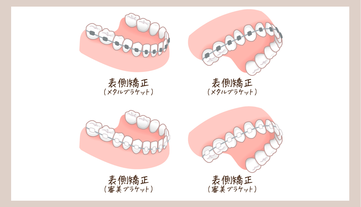 歯列矯正には、大きく分けて「ワイヤー矯正(表側矯正・裏側矯正)」と、「マウスピース矯正」の2種類があります。
