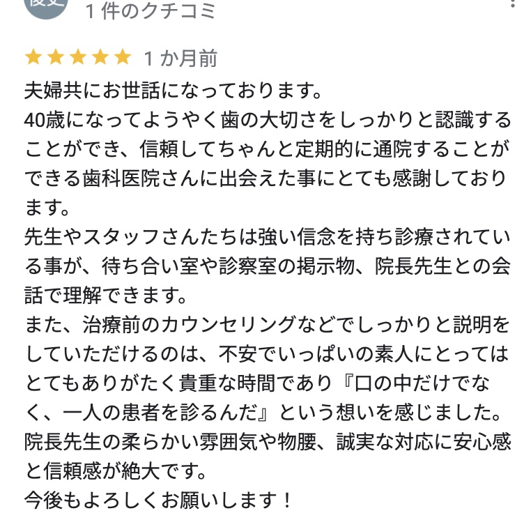 当院では、患者に情報を十分提供し、地域の方々に親しみを持っていただける歯科医院を目指しています。特に子供たちには、歯医者が怖いと感じないよう、安心できる治療を提供しています。