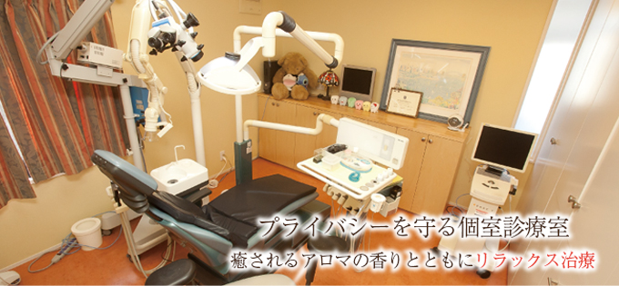 マコト歯科医院は、個室の診療室を完備しています。中にはアロマを焚いてよりリラックスできる空間を提供している個室もあるため、緊張してしまう方でも安心して治療を受けることができます。