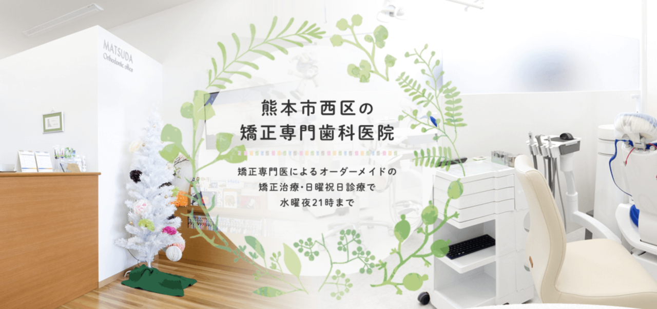 まつだ矯正歯科は熊本市では珍しく水曜日は21時まで診療していて、日曜祝日も診療をしている歯科クリニックです。平日は仕事をしていて歯科クリニックに通いづらい方や日曜日しか受診に来られない方にはおすすめの歯科。