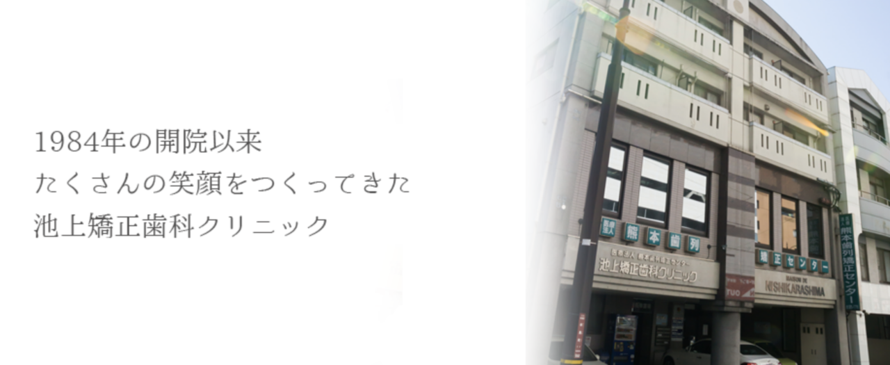 池上矯正歯科クリニックは熊本桜町バスターミナルから徒歩3分にある歯科医院。池上矯正歯科は土曜日診療は毎週、日曜日診療は月1回しているため時間の都合がつきやすいです。