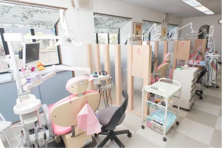 ジェイズ歯科はキッズスペースが用意されています。小さなお子さんがいる方も気兼ねなく通院していただけます。また医院の入り口はスロープになっておりベビーカーや車椅子をご利用の方も安心です。