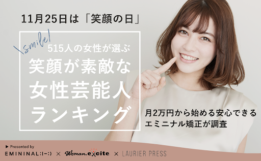 エミニナル矯正は、「いい笑顔の日(11月25日)」に際し、20歳〜59歳までの女性515人が選ぶ「笑顔が素敵な女性芸能人」を調査し、プレスリリースにて配信しました。