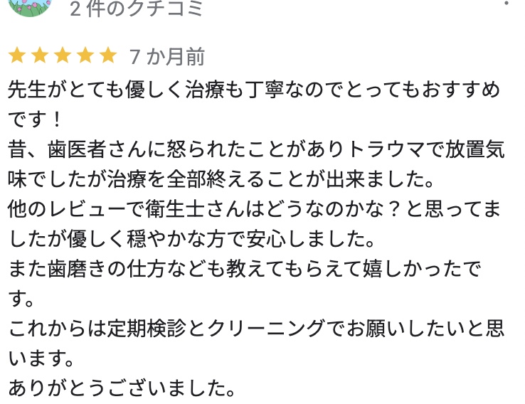 患者様の口内状態や治療の必要性、治療の利点や欠点、治療期間や費用など、全ての情報を丁寧に説明します。分からない点や不安な点があれば、納得いくまでわかりやすく説明してくれます。
