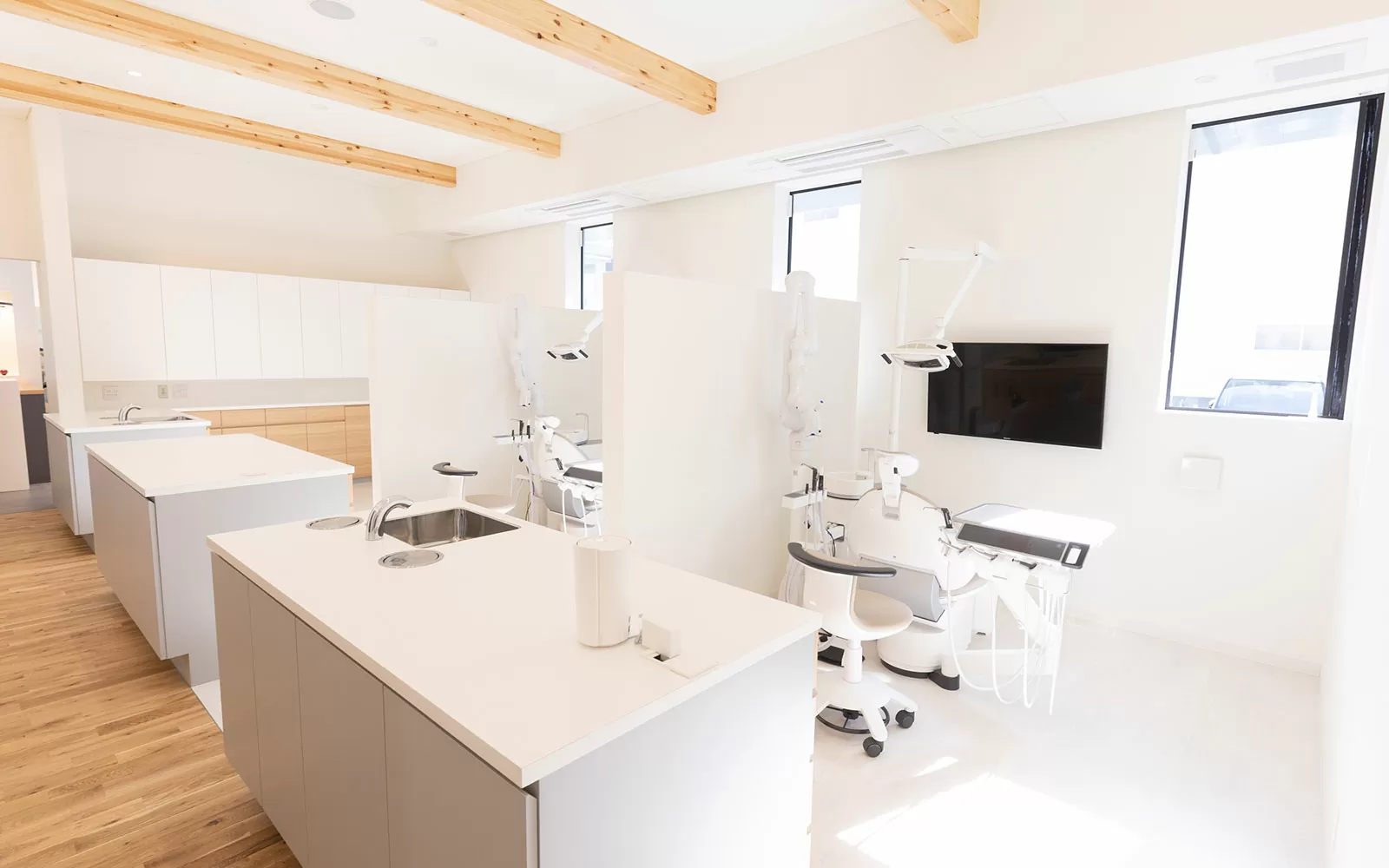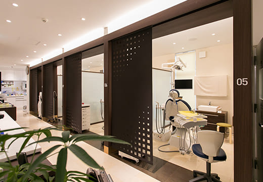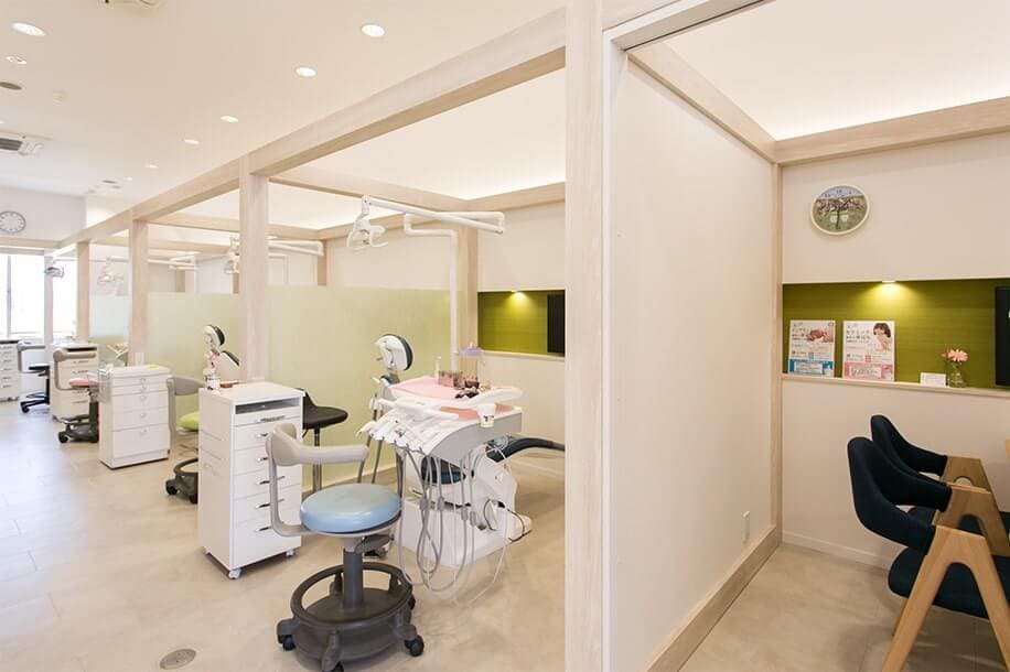 まむろ歯科には個室の診療室が設けられています。お口の中を他の患者さんに見られることがないので、安心して治療を受けることができます。また待合室も明るく清潔感あふれ、気持ちの良い環境をつくられています。