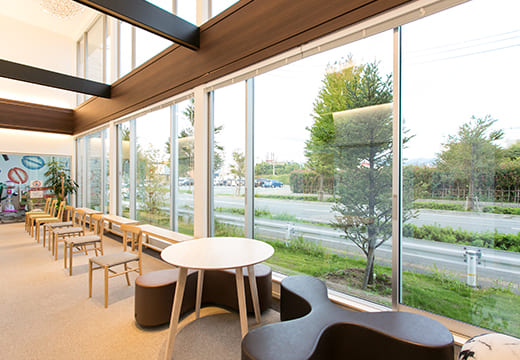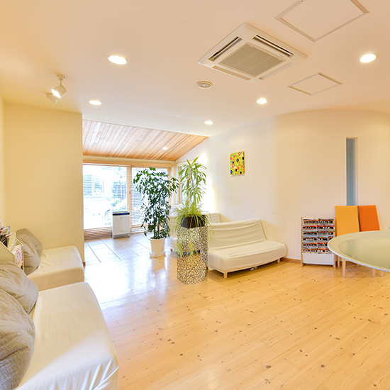 ティーズデンタルオフィスには吹き抜けで開放感あふれるキッズスペースと、無料の託児サービスがございます。小さなお子様連れでも安心して治療を受けることができます。待合室も院長のこだわりがあり、有名な家具職人が作られた座り心地の良い椅子が並びます。