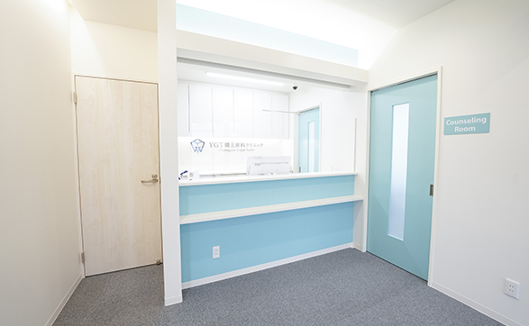 なりさわ歯科クリニックは、プライバシーに配慮し完全個室のカウンセリングルームを設けられています。カウンセリングは30分~1時間ほどしっかり時間を設け、落ち着いた空間でじっくりと治療について話をすることが可能です。